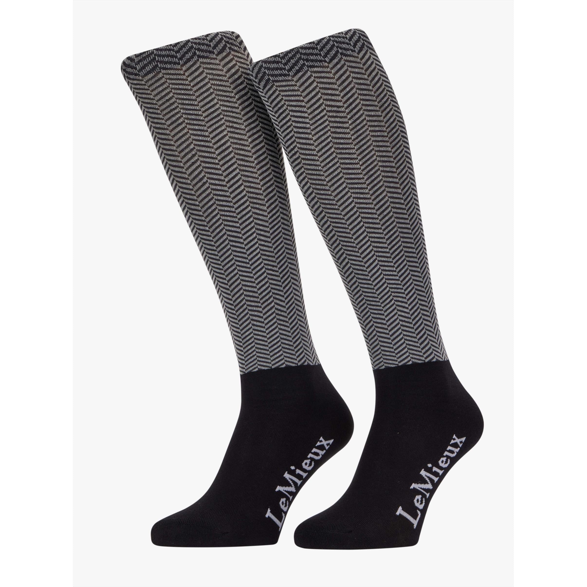 Sie passen zur gesamten Aspen Kollektion und sind im Wadenbereich mit einem Fischgrätmuster aus Strickjacquard versehen, um sie über Leggings oder Reithosen zu ziehen. Diese langen Socken haben einen nahtlosen Fußbereich, der für hohen Komfort unter Stiefeln und Schuhen sorgt.