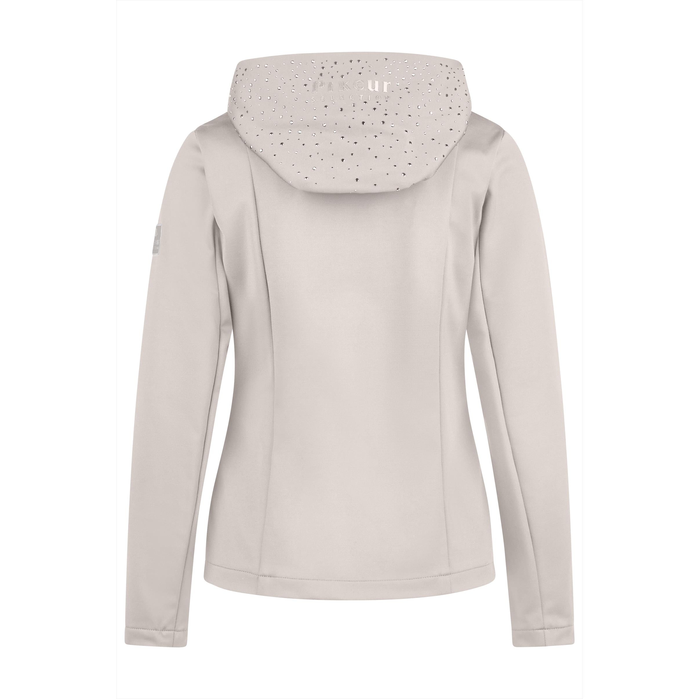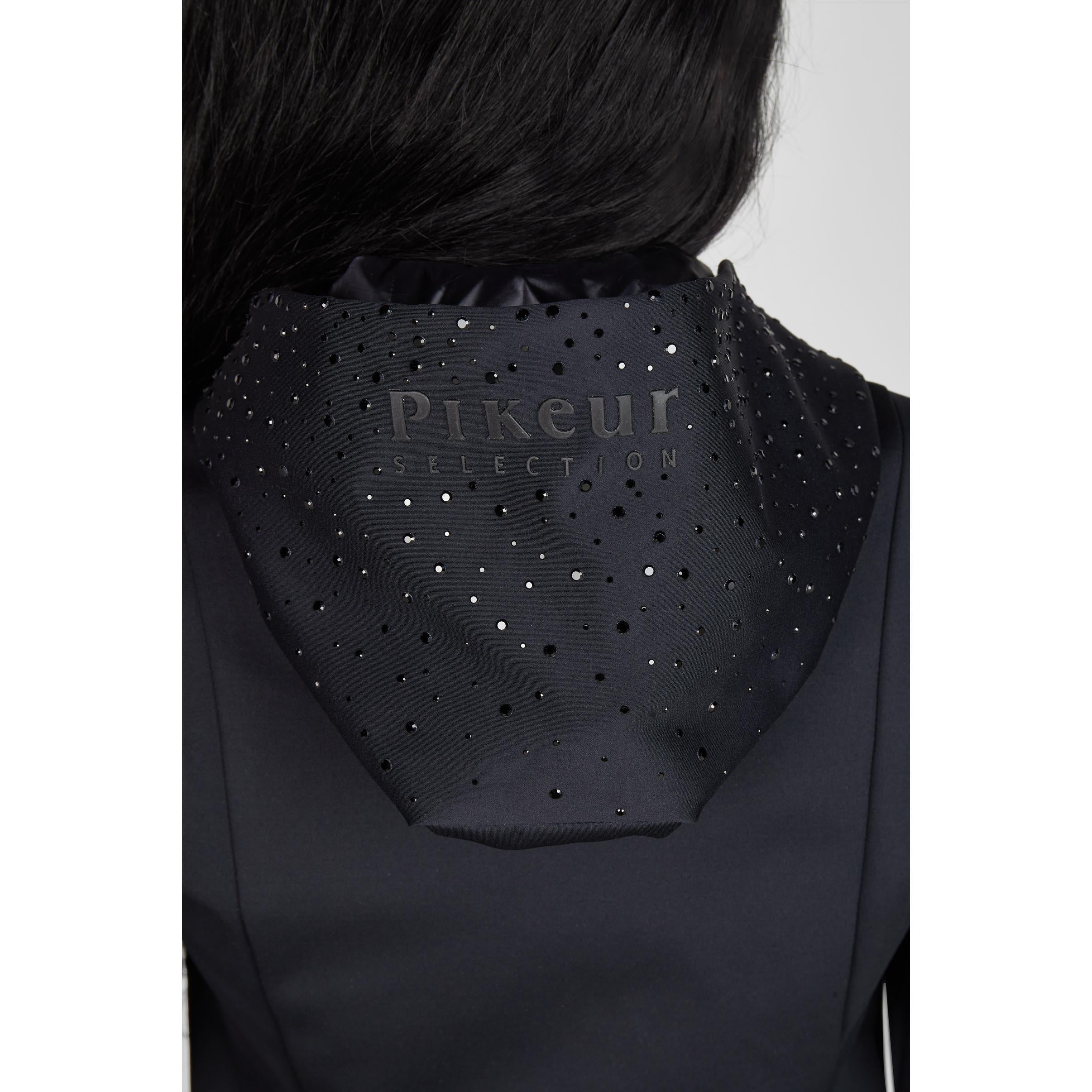 Die Kapuze ist mit zahlreichen Steinchen und einem mittigen Pikeur Print verziert.