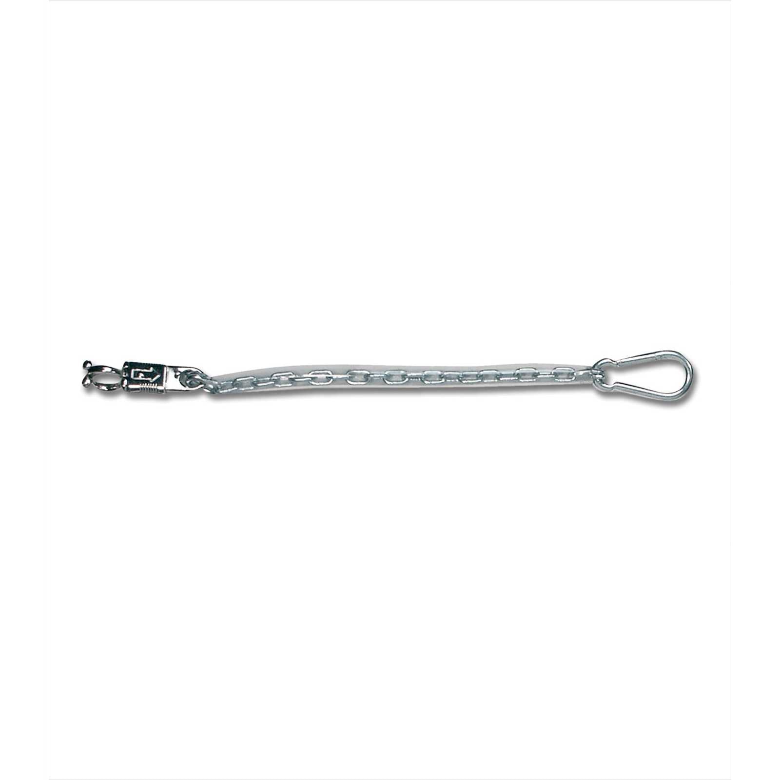 Transparente, ummantelte Kette mit Panikhaken und Karabiner.