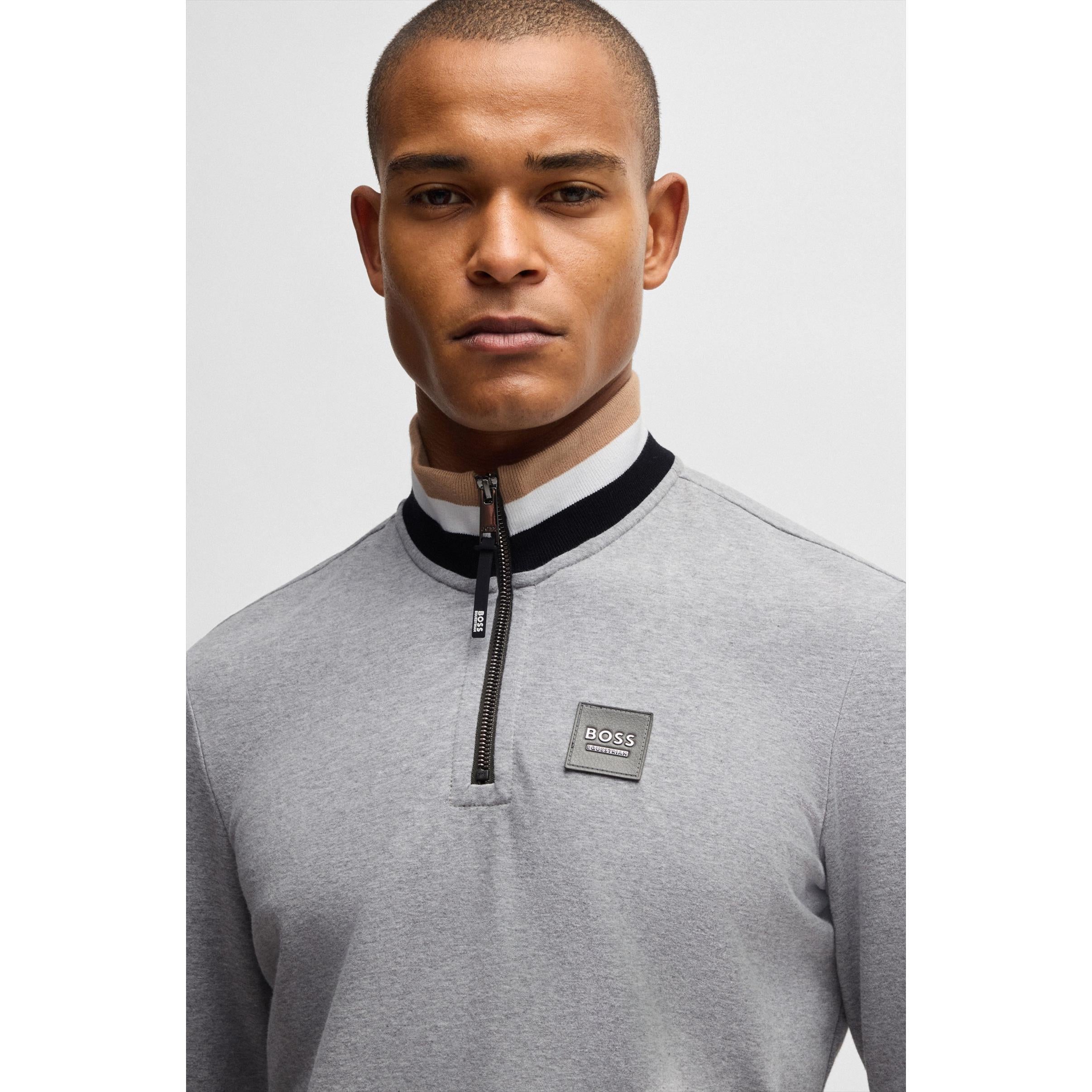 BOSS Equestrain Logo Patch aus Lederimitat auf dem linken Oberarm.