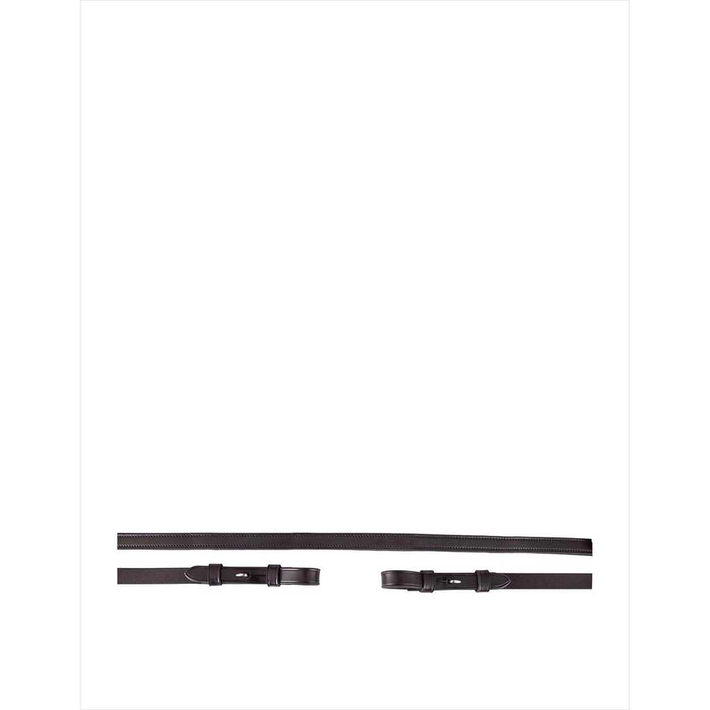 Zügel aus Leder mit gummierter Innenseite und Zaumhaken. Ohne Martingalschieber. Breite: 16 mm.