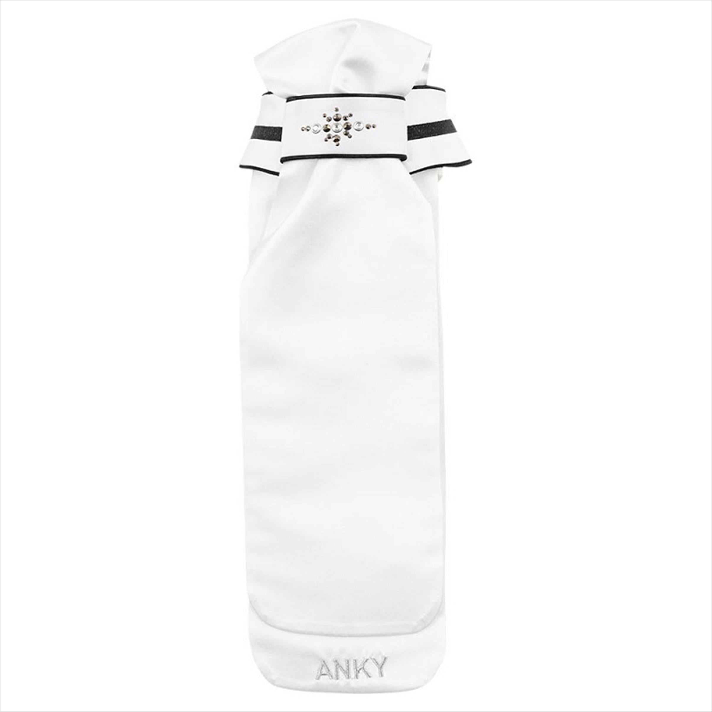 Dieses schicke Plastron mit Falten ist mit Kontrast-Akzenten in Schwarz, Marineblau oder Silber versehen. Auf der Vorderseite befindet sich ein Muster aus Strasssteinen in verschiedenen Größen, passend zur Farbe der fabrlichen Details.