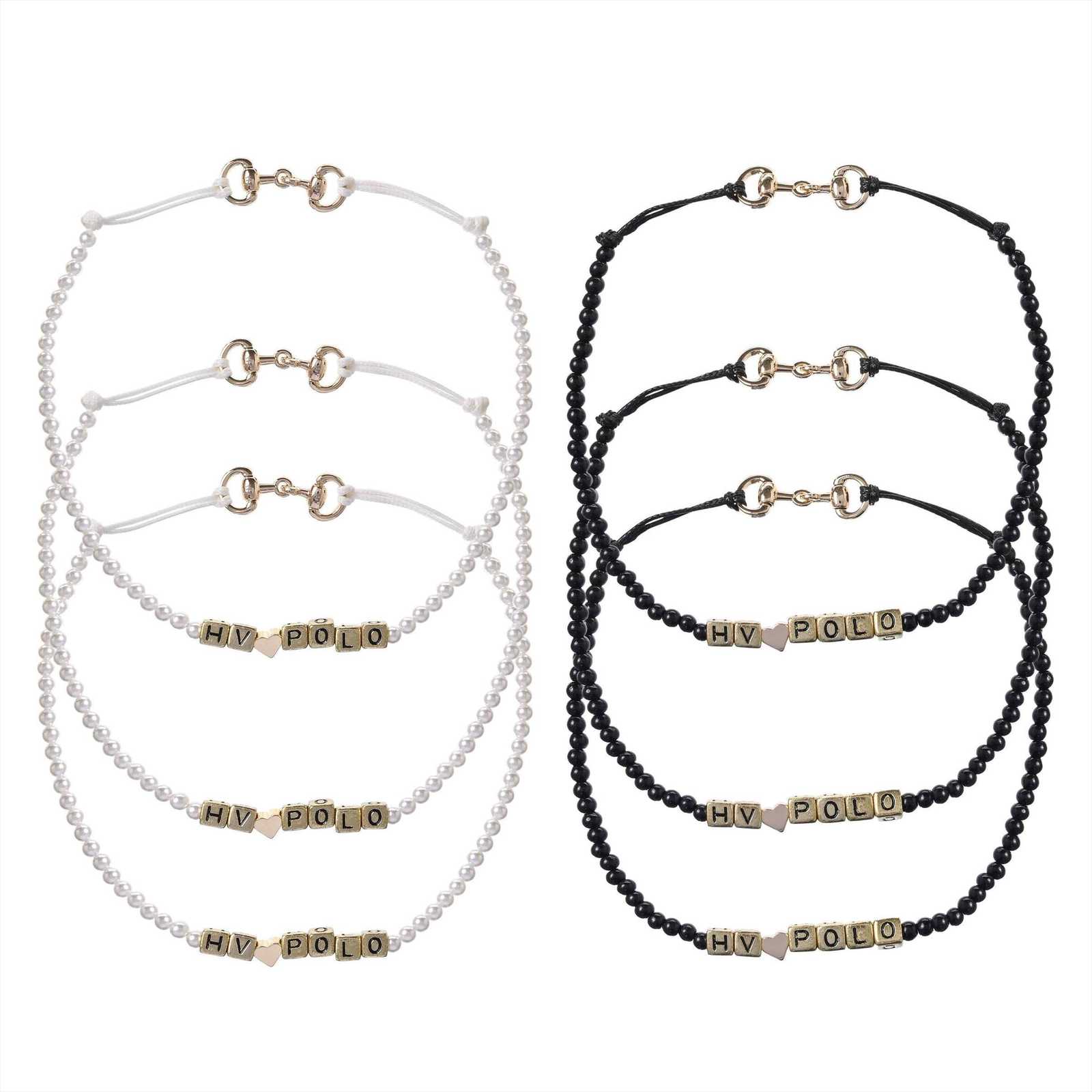 Chic pearl-look bracelet with our famous metal bit trim and HV Polo letter beads