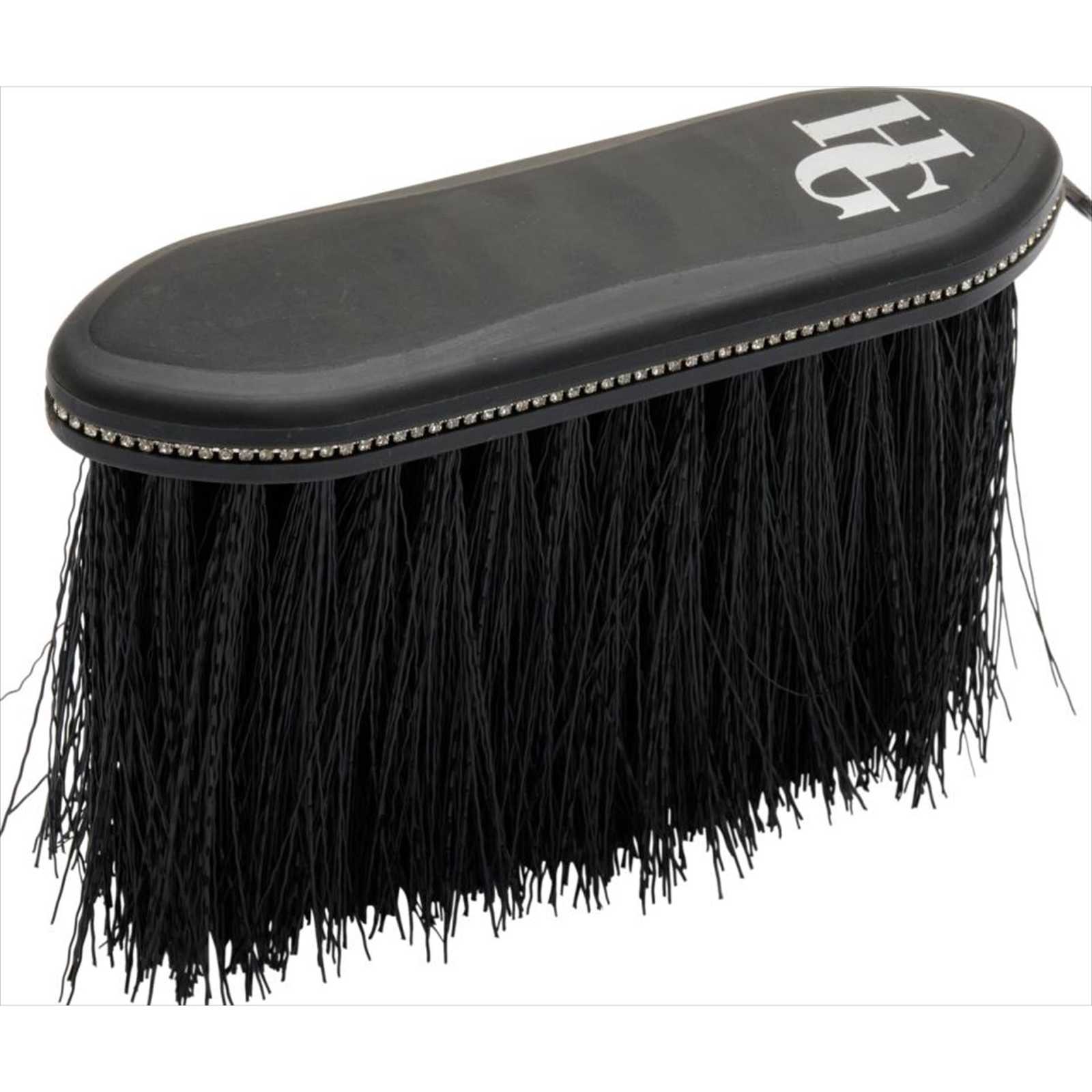 Kunststoff-Mähnen-Bürste mit langen, steifen Borsten, Strassverzierung und silbernem Logo-Aufdruck.