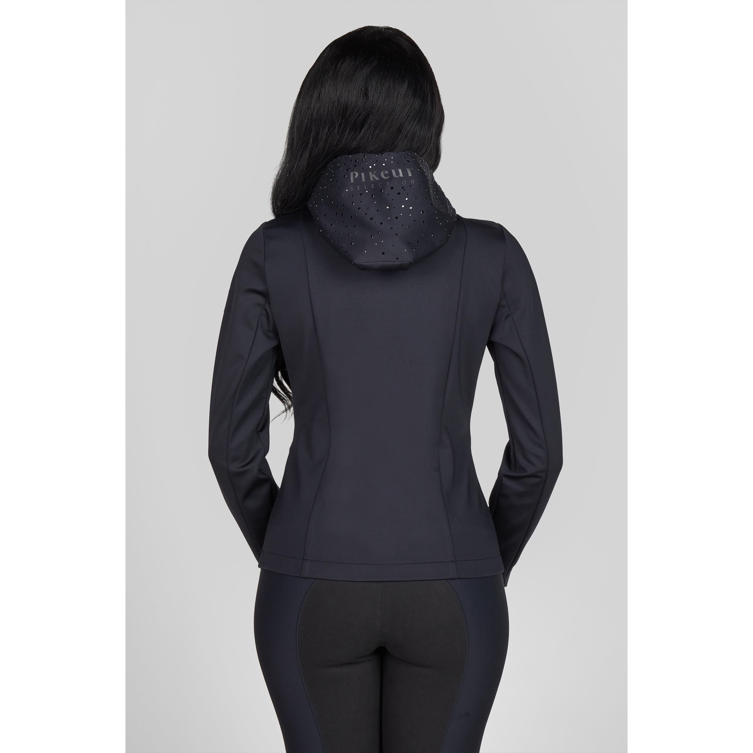 Die Kapuze ist mit zahlreichen Steinchen und einem mittigen Pikeur Print verziert.