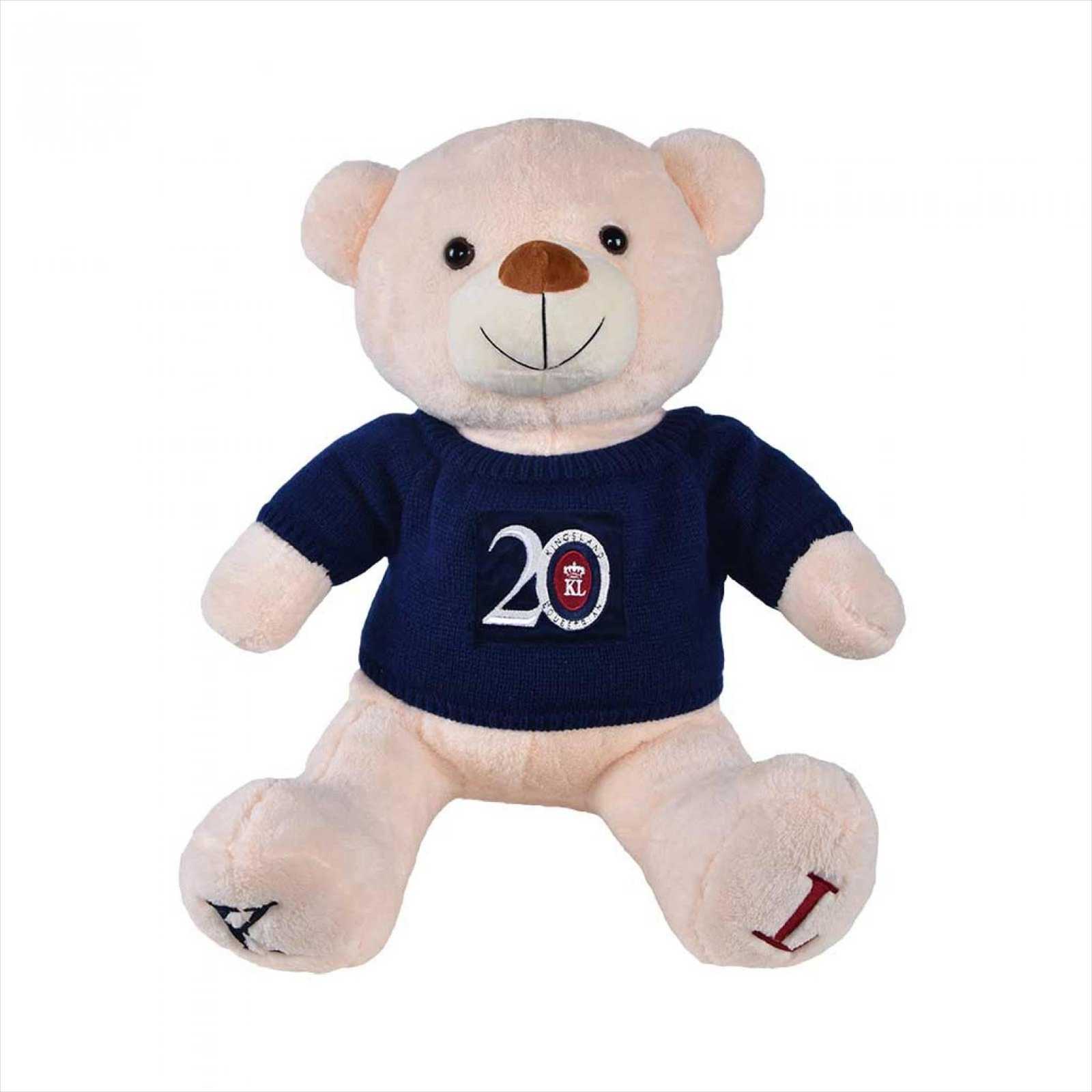 Knitted sweater with 20th anniversary logo embroidery on the front.