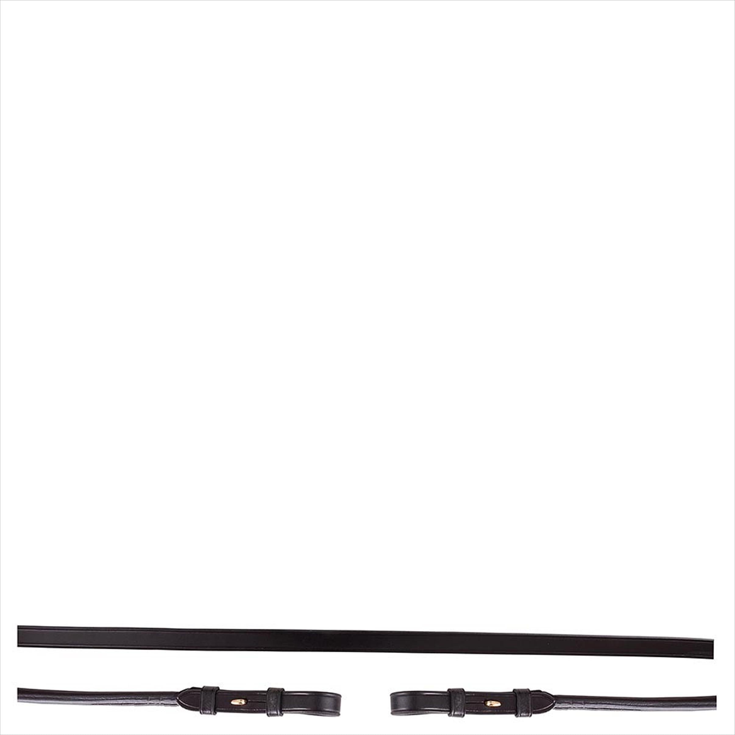 Kandarenzügel aus Leder mit Zaumhaken, 13 mm. Ohne Martingalschieber. Die Zügelenden sind aus rundgenähtem Leder.