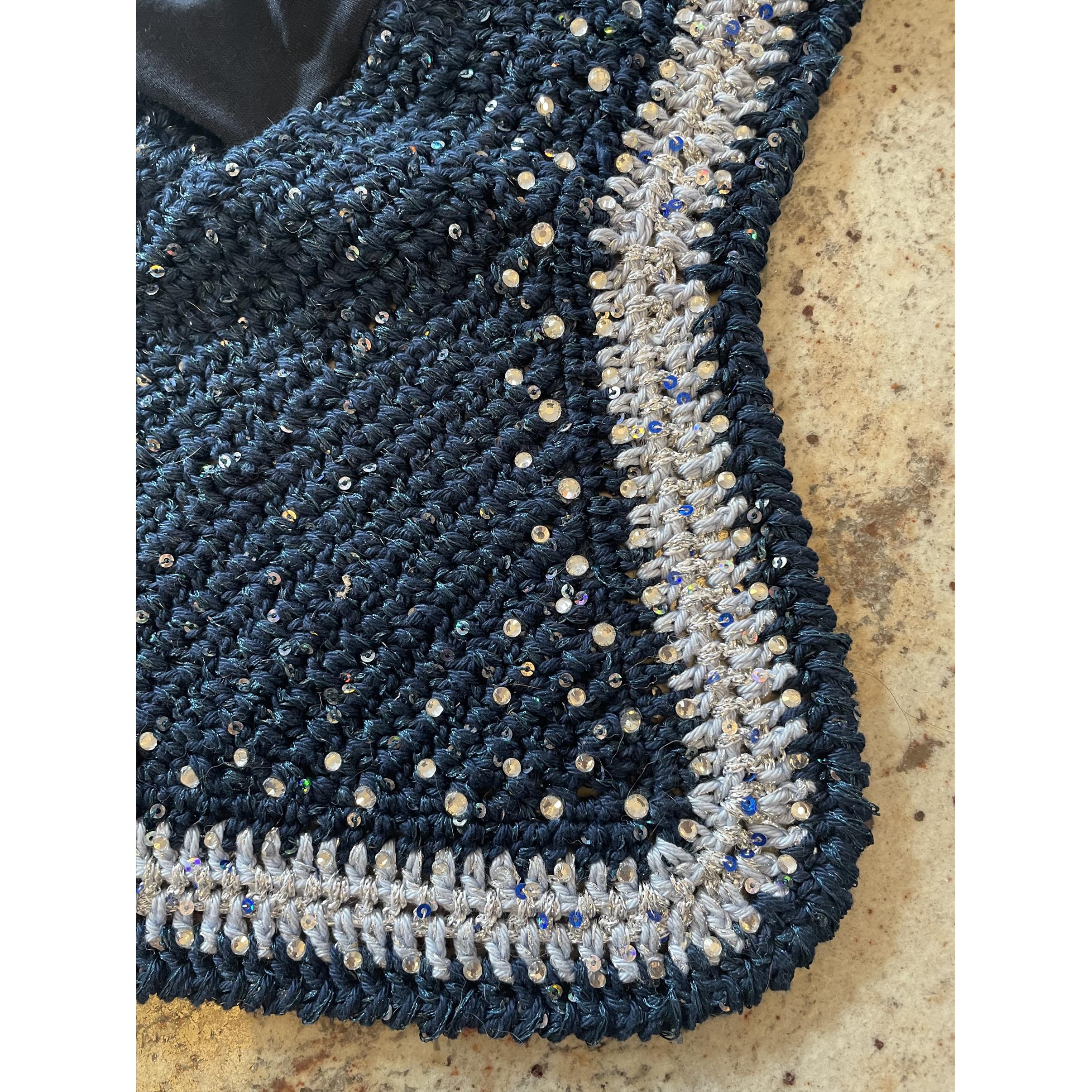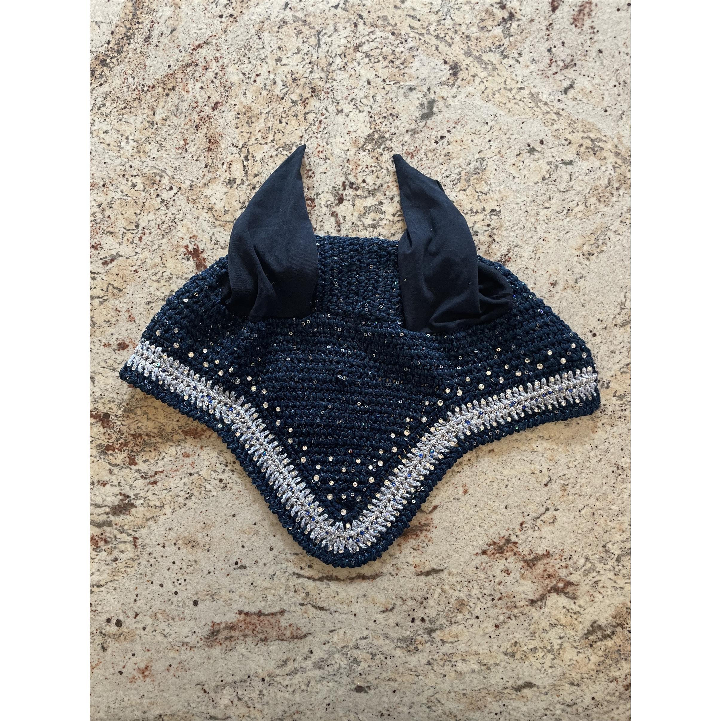 Wunderschöne gehäkelte Fliegenmütze mit Glitzer.