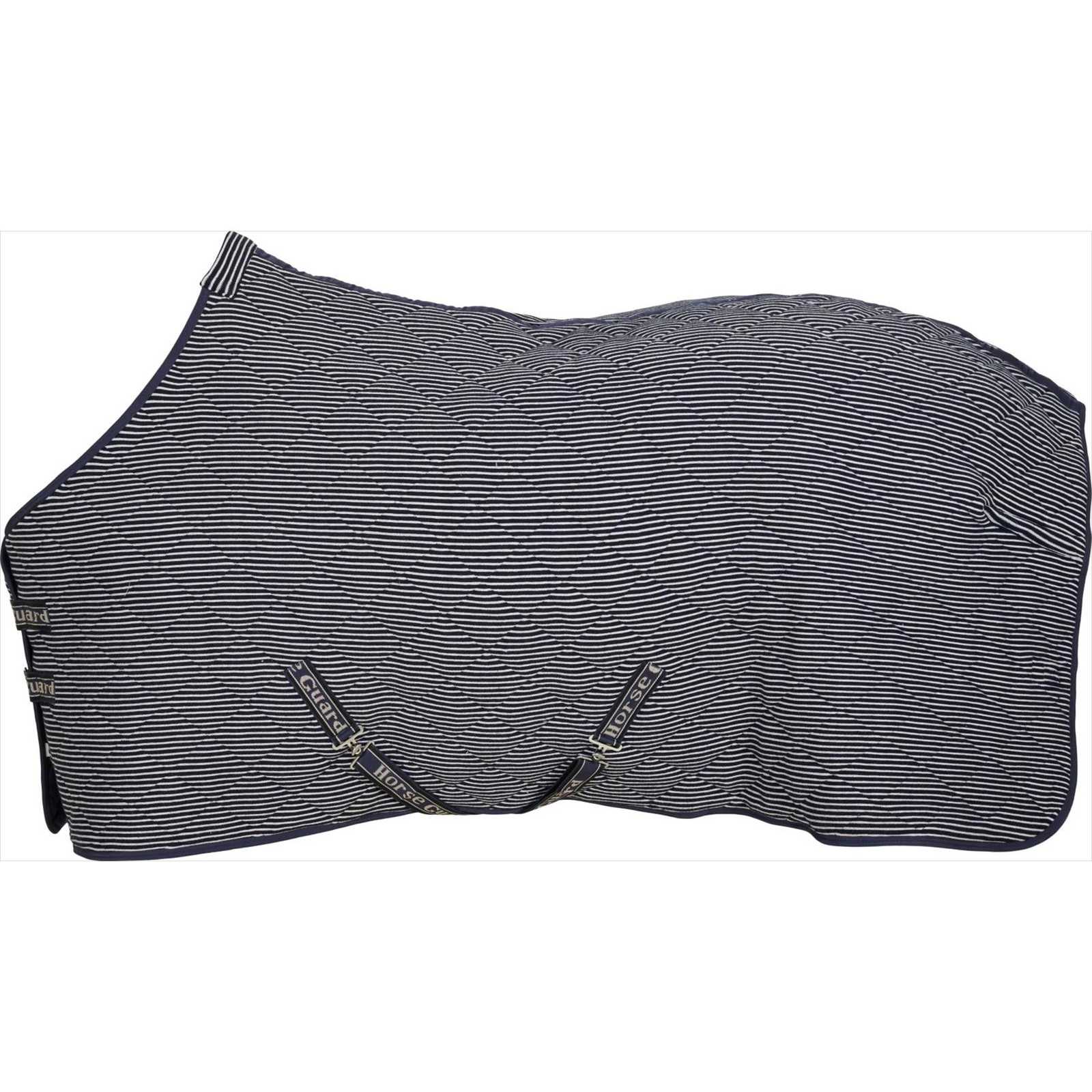 Die Abschwitzdecke besticht durch ein wunderschönes Streifenmuster und eine Steppung. Sie verfügt über zwei verstellbare Bauchgurte vorne und abnehmbare Kreuzgurte.