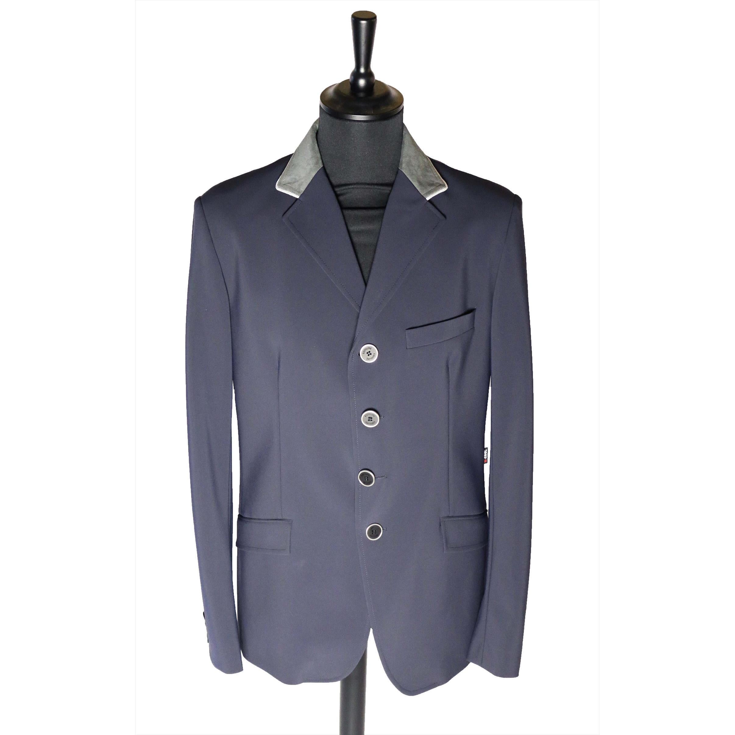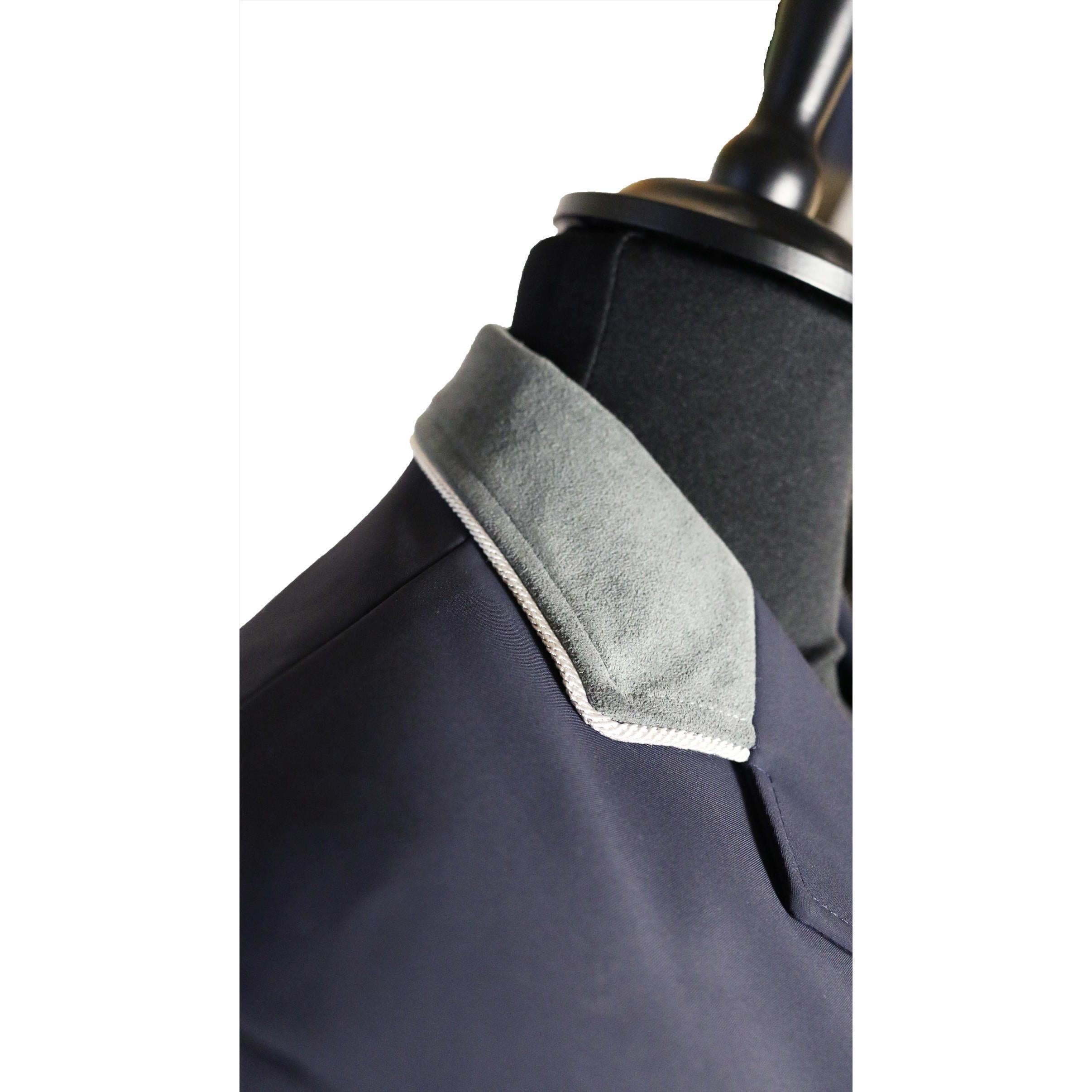 Alcantara-Kragen in grau mit silbergrauer Kordel.